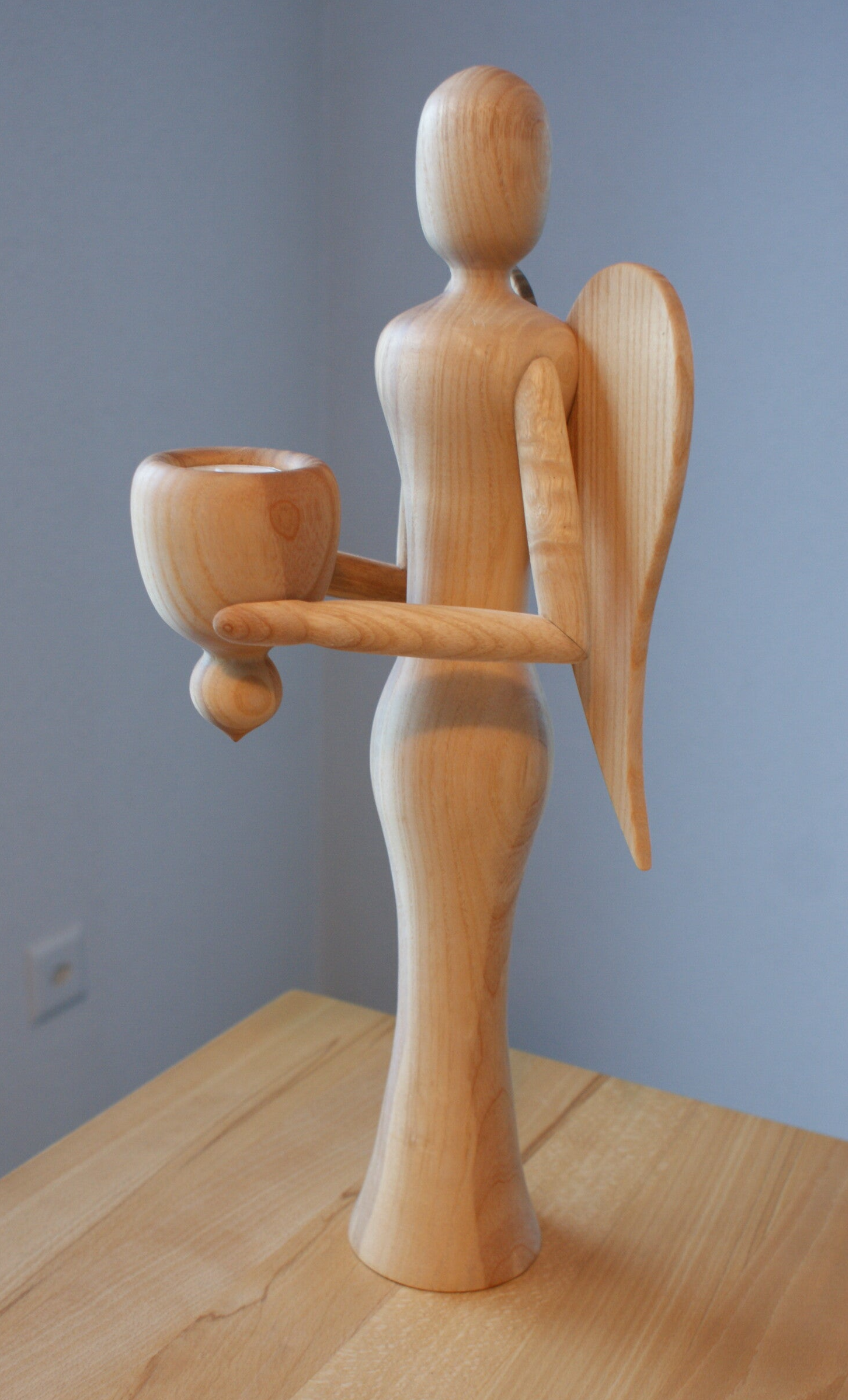 Engel aus Eschenholz mit Teelichthalter (geölt).