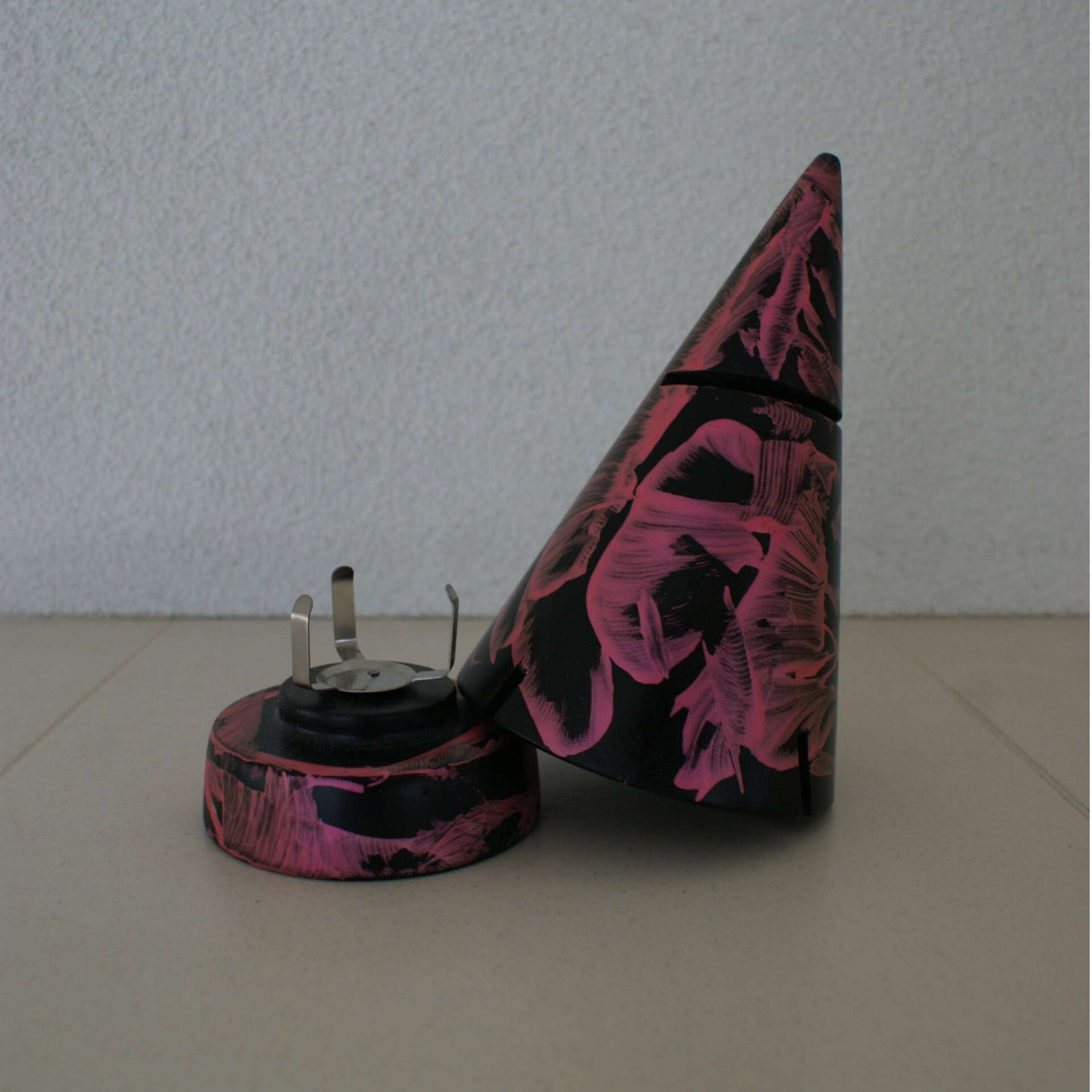 Diese Räucherfigur ist aus Lindenholz hergestellt und mit Acryl-Schimmerfarben bemalt.