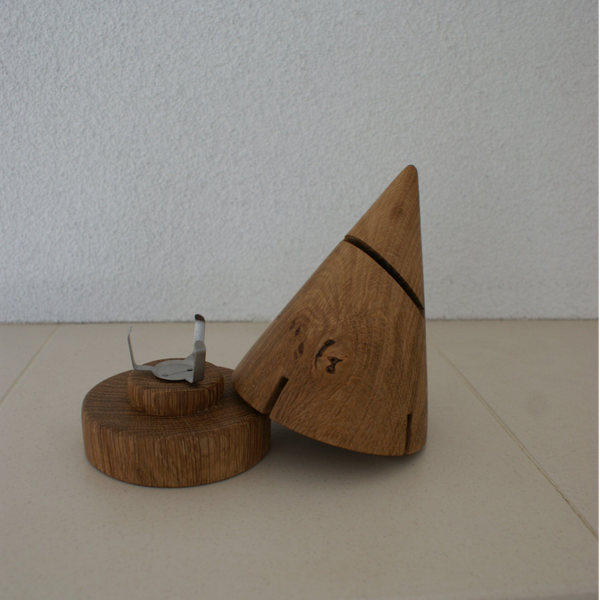 Diese Räucherfigur wurde aus Eichenholz hergestellt.