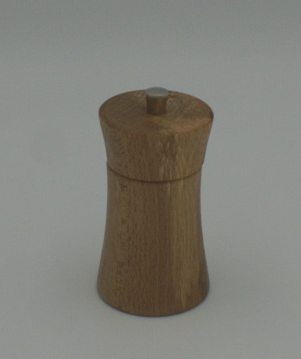 Pfeffermühle aus stockigem Buchenholz mit einem schweiss- und speichelechten Schutzlack versehen.